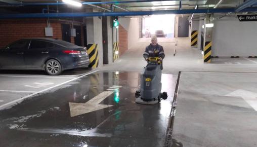 - Уборка паркинга поломоечной машинкой