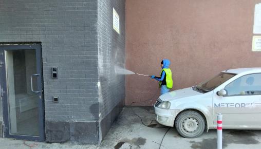 - Проведена уборка придомовой территории с использованием мойки высокого давления.
